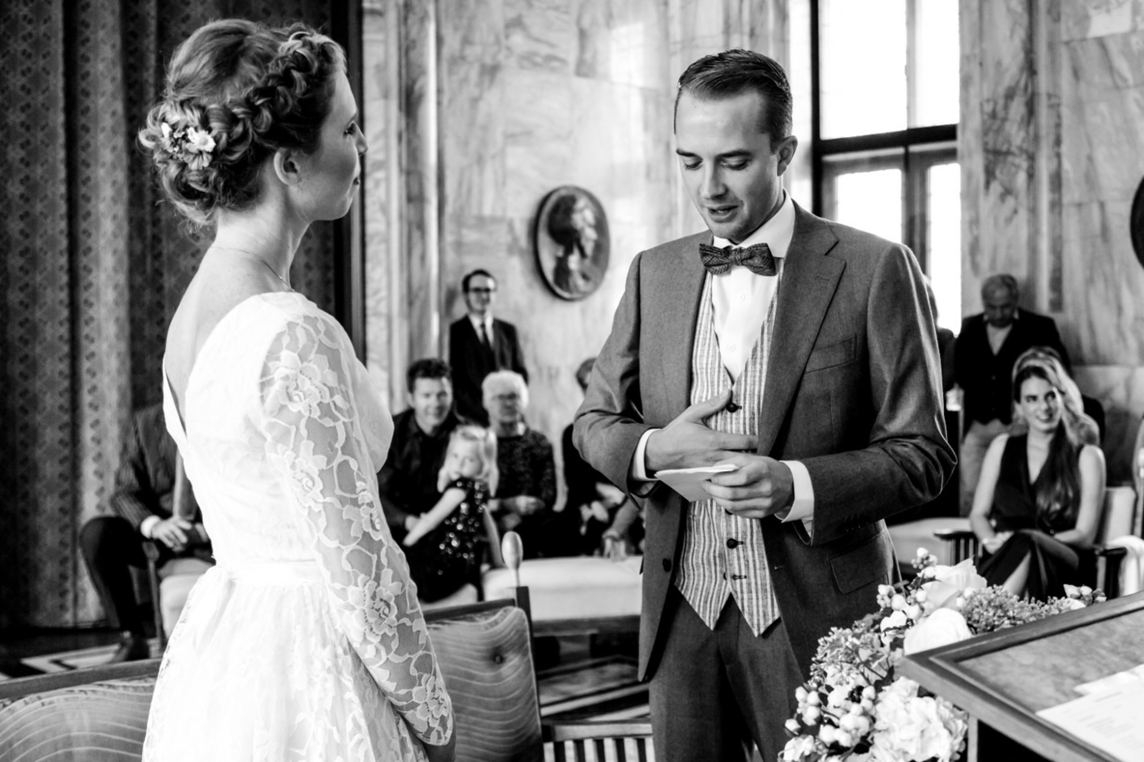 Ik zoek naar spontane blikken, kleine details en vrolijke chaos die jullie dag zo eigen maken. De trotse blik van opa die zachtjes de wang van zijn kleinkind aait. De vader die zijn tranen niet kan tegenhouden wanneer hij zijn dochter voor het eerst ziet. Of vrienden die in een hoek dubbel liggen van het lachen.