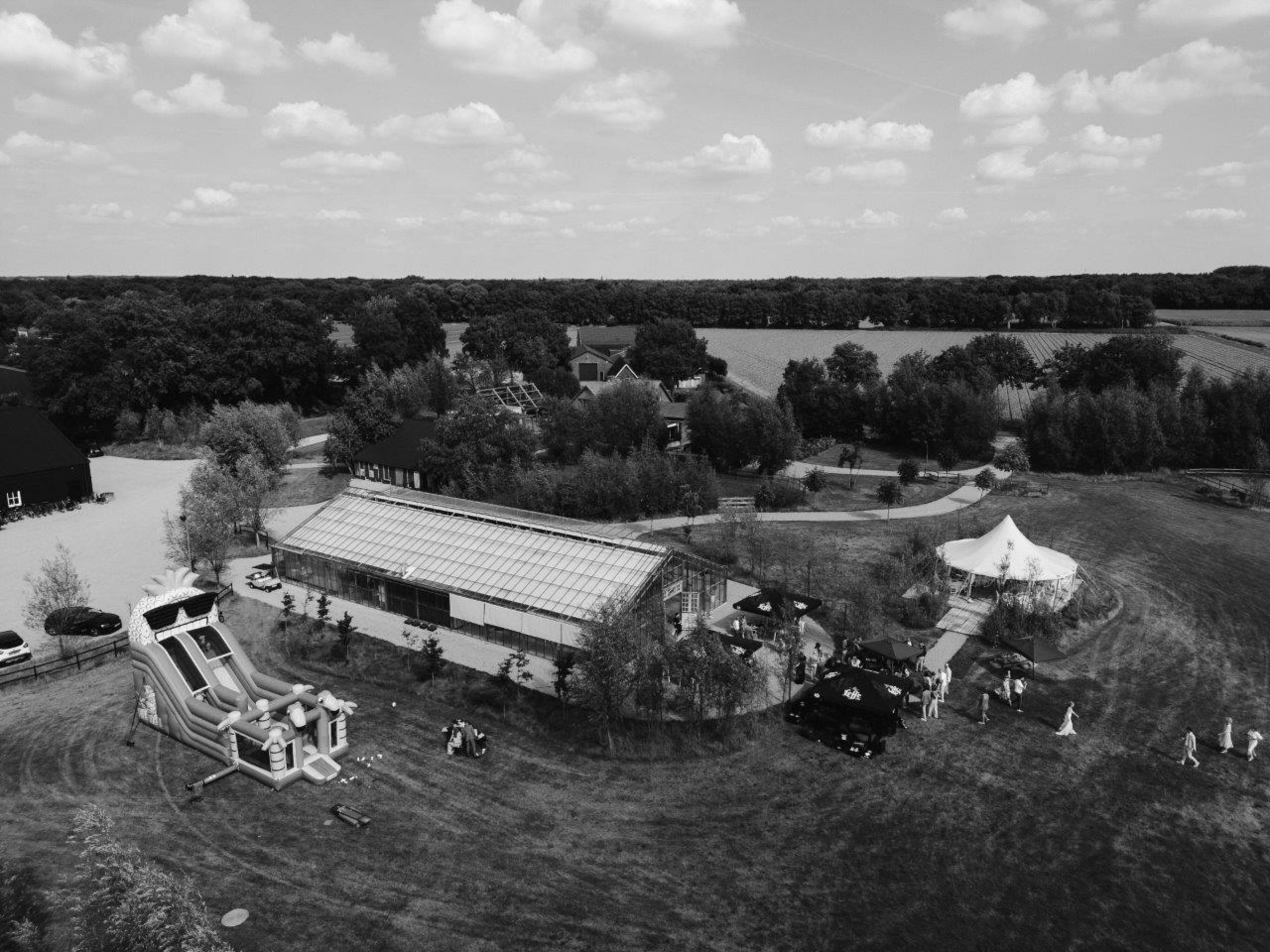 Omringd door een prachtige groene omgeving hangt er bij Blooming in de Kas een magische sfeer, zowel binnen als buiten. Van intieme ceremonie tot bruisend feest: elk moment van jullie trouwdag krijgt hier zijn eigen setting. De kas, de fruitboomgaard, onze karakteristieke bomenlaan, de antieke deuren en de oude schuur vormen samen een droomachtige achtergrond voor jullie ceremonie én bruidsreportage.