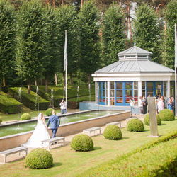 Deze sprookjesachtige plek is een officiële trouwlocatie van de gemeente Ermelo. De perfecte plaats om te trouwen en de start van jullie leven samen te bezegelen! Letterlijk alles kan: de bruidsmake-up in de eigen beautysalon, de fotoshoot in de prachtig aangelegde Franse tuinen, de trouwplechtigheid in ons romantische trouwprieel, het aansnijden van de taart op het bordesterras, het diner, een bruisende feestavond en natuurlijk de huwelijksnacht in een romantische bruidssuite.