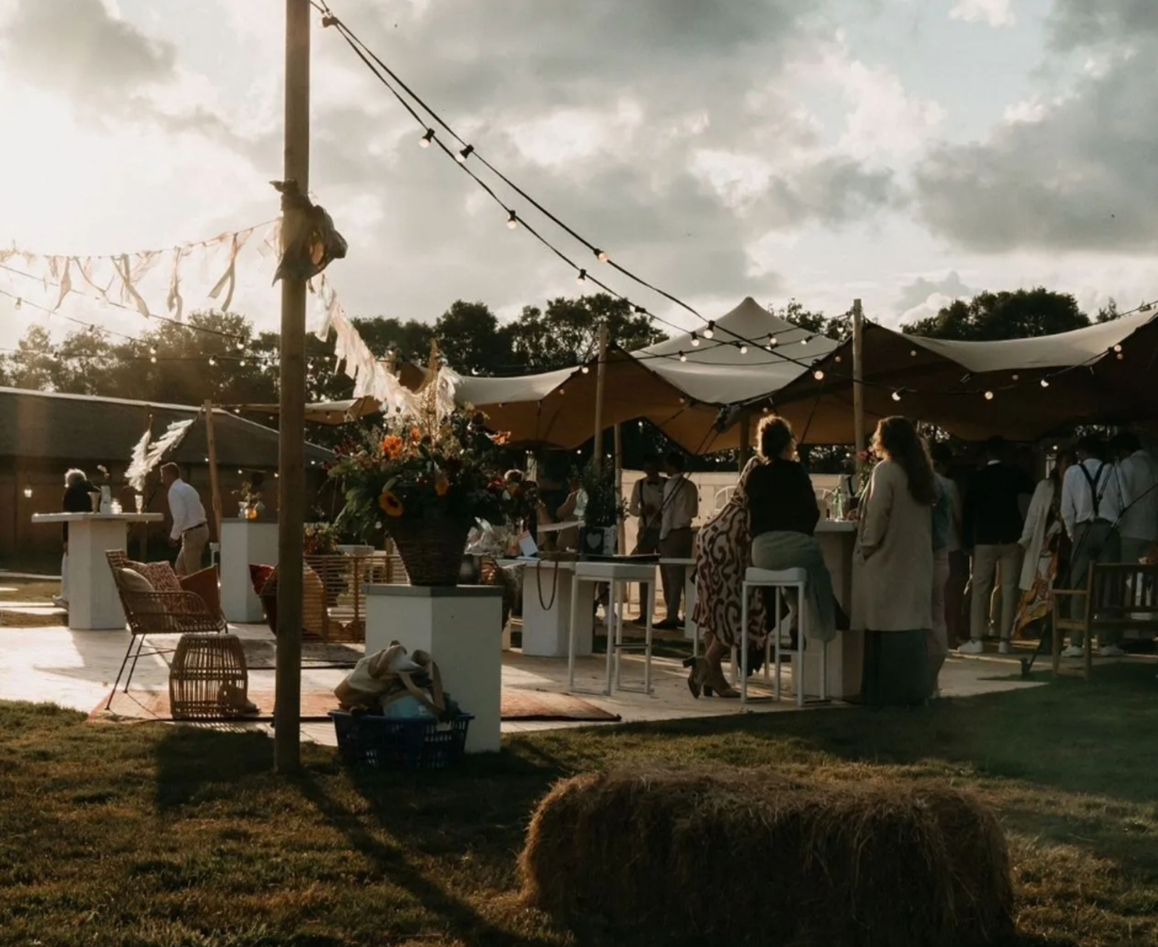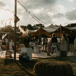 - De schitterende Sailcloth tent: Met zijn luxe uitstraling en ivoorwitte zeildoek is dit de ultieme eyecatcher. De romantische sfeer garandeert een chique en landelijke setting voor uw ceremonie, diner of feest.