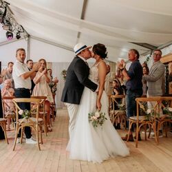 “Via onze trouwlocatie bij SerVeer terecht gekomen en we hadden meteen een goed gevoel bij Veerle. Ze is heel kundig en weet waar ze over praat. Niks is te gek en ze denken met alles mee. Onze trouwdag was dan ook magisch en tot in de puntjes geregeld! Als je SerVeer inhuurt wordt het zeker een topfeest!”